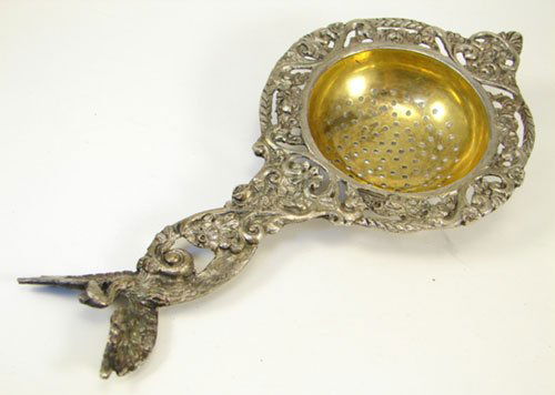 Antique French silver strainer. Elaborate ram's head handle and floral garland decorated body.Tremont Auctions4.6(313)$100(1 bid)7 days Left