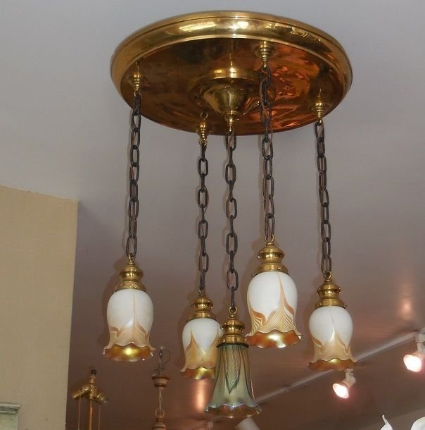 American Gilt Brass Four-Light Chandelier with Steuben "Pulled Feather" ShadesFontaine's Auction Gallery4.6(356)$600Mar 14, 2026