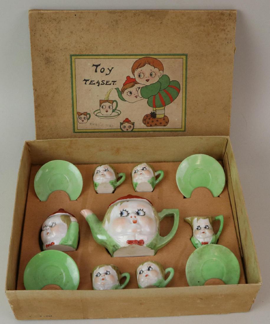 SoldANTIQUE FRENCH CHILD'S TEA SET ~ ORIGINAL BOX ~ANTIQUE SERVICE FOR 6 CHILD'S TEA SET IN ORIGINAL BOX. NO CHIPS OR DAMAGES TO CHINA TEA SET,BOTTOM OF PLATES ARE ROUGH, JUST THE WAY THEY WERE MADE. BOX SHOWS WEAR AND HAS TORN SPOTS. BOX IS NUMBEREDSee Sold Price