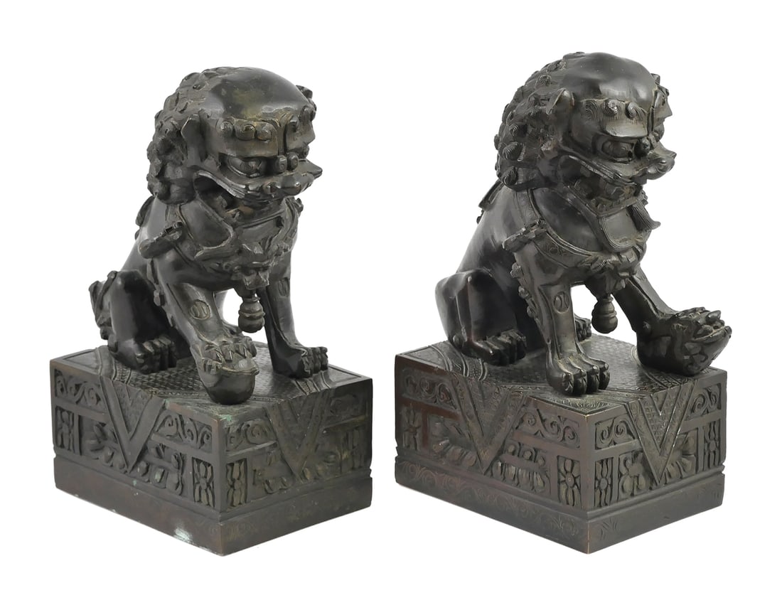 Antique Chinese Bronze Foo Lions, Pair