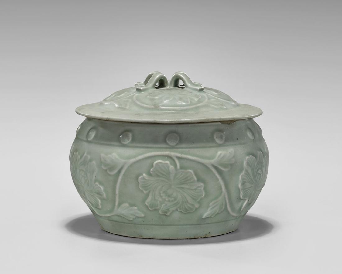 Antique Chinese Celadon Covered Jar