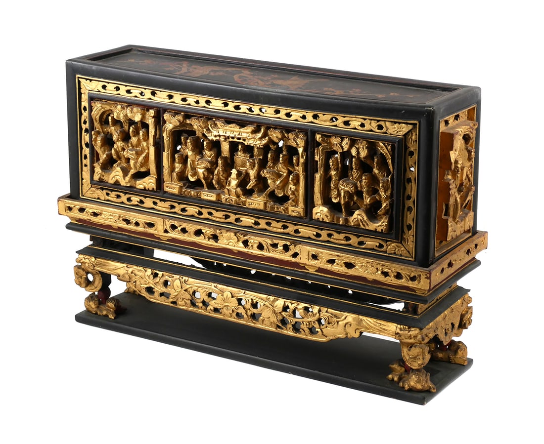 A RARE HARDSTONES INLAID BRONZE PARTLY GILT SUTRA BOX WITH COVER1 day LeftAesthetic Movement Japanned Chest of Drawers4 days LeftA HU WENMING PARCEL-GILT 'LINGZHI & LOTUS' BRONZE TRIPOD CENSER, MING DYNASTYApr 16, 2026A wooden tire lacquered gold hand-painted dragon and phoenix pattern dwarf table made in theApr 18, 2026CHINESE PARCEL-GILT RED LACQUER ALTAR-FORM HALL CABINETMar 28, 2026Vintage Theodore Alexander Bamboo and Ebony Chinoiserie Lacquered Style CabinetMar 28, 2026A Chinese Inlaid Lacquered Wood Seal Chest Qing Dynasty4 days LeftFINE CHINESE EXPORT GILT & LACQUERED SEWING BOX & ACCESSORIESMar 29, 2026A MOTHER-OF-PEARL-INLAID BLACK LACQUER KANG TABLE, LATE MING TO EARLY QING DYNASTYApr 17, 2026A MOTHER-OF-PEARL-INLAID BLACK LACQUER LOW TABLE, KANGJI, 17TH CENTURYApr 17, 2026Antique Chinoiserie Lacquered and Gilt Tea Caddy.Apr 12, 2026Chinese Export Lacquered and Gilt Decorated Tea Caddy4 days LeftAntique Japanese Lacquer Cabinet on StandA Chinese Lacquer and Gilt Game Box with Playing Card Trays4 hrs LeftHuanghuali Buddhist Scripture Cabinet with Jade Inlay3 hrs LeftEnglish Chinoiserie Decorated Champaign ChestApr 07, 2026