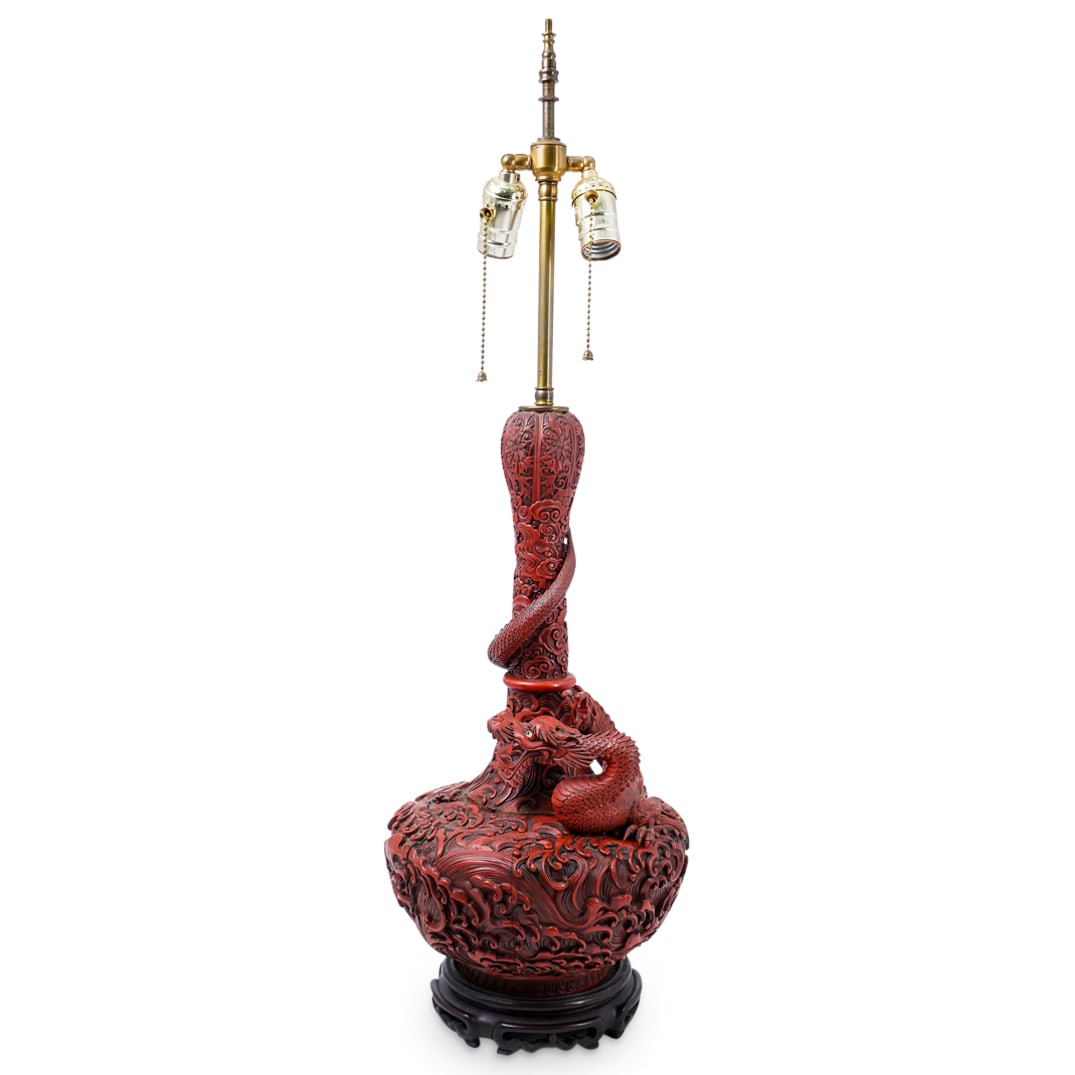 Antique Chinese Cinnabar Lacquer Table Lamp