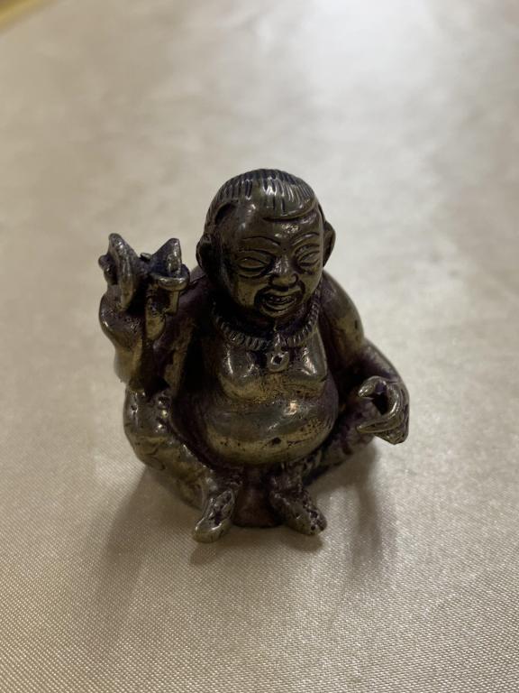 A GILT-BRONZE TEACHER FIGURE (SMALL BUDDHA)