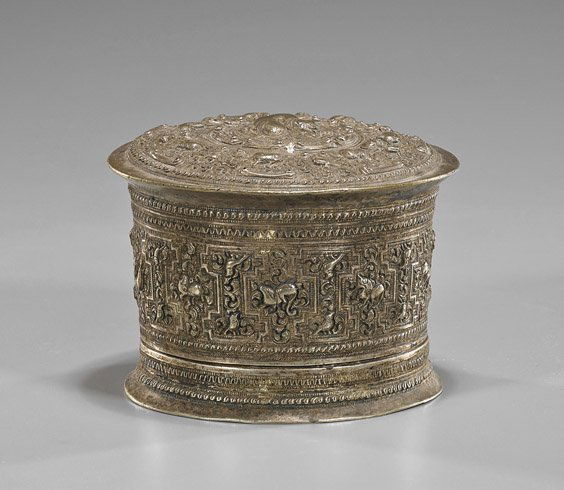 Chinese silversmith. Lidded jar richly decorated in relief with flowers and ornaments.Chairish Auctions4.5(10.4k)$120