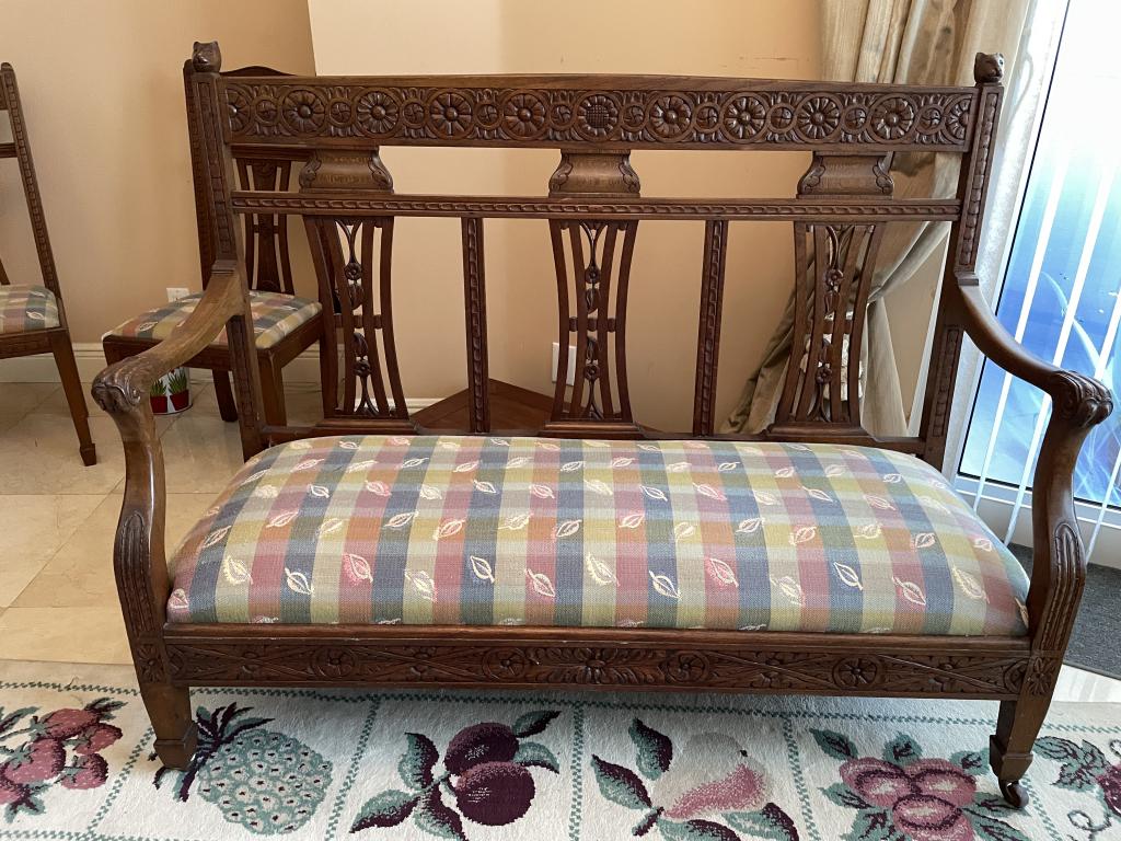 Antique Style Two-Seat Bench Made of Hand-Carved Wood and Fabric UpholsteryAqua Arts & Antiques4.4(12)$1001 day Left