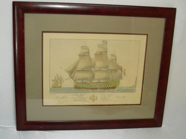 ANTIQUE COLORED ENGRAVING BRITISH SAILING SHIP