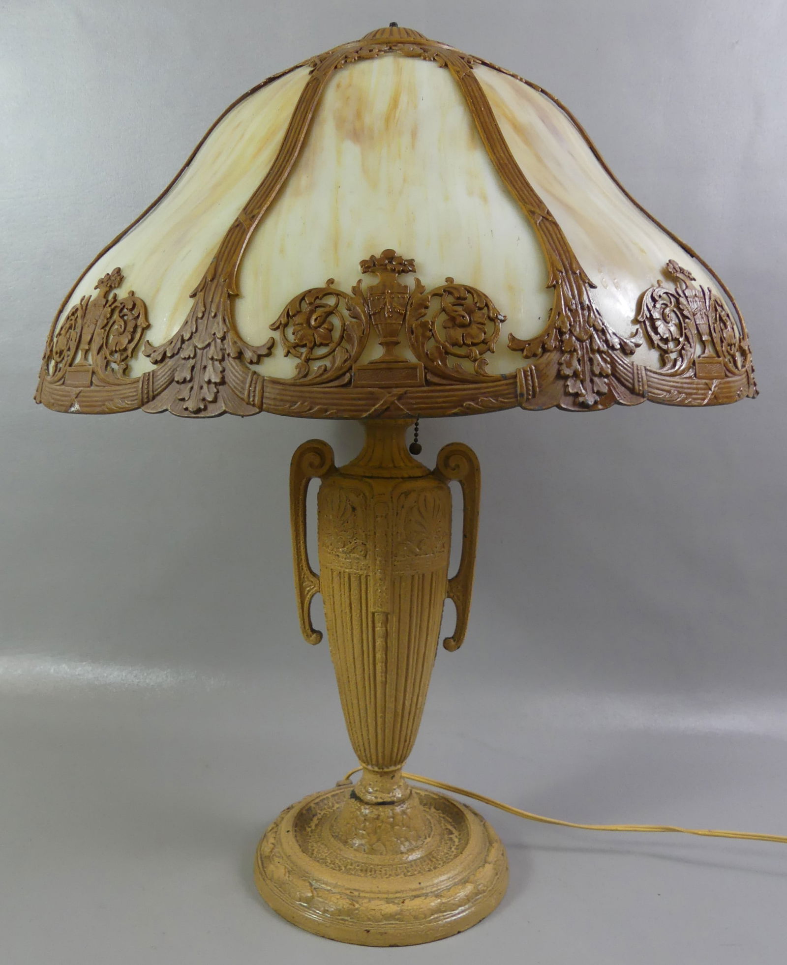 Antique Art Nouveau Brass Open Scroll Work Designed 8 Panel Slag Glass Table LampAtlee Raber Auctions4.6(530)$10(1 bid)Mar 16, 2026