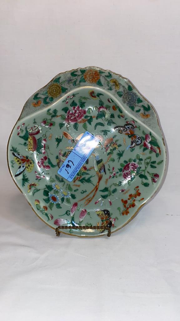 ANTIQUE DECORATED CELADON SHRIMP DISH