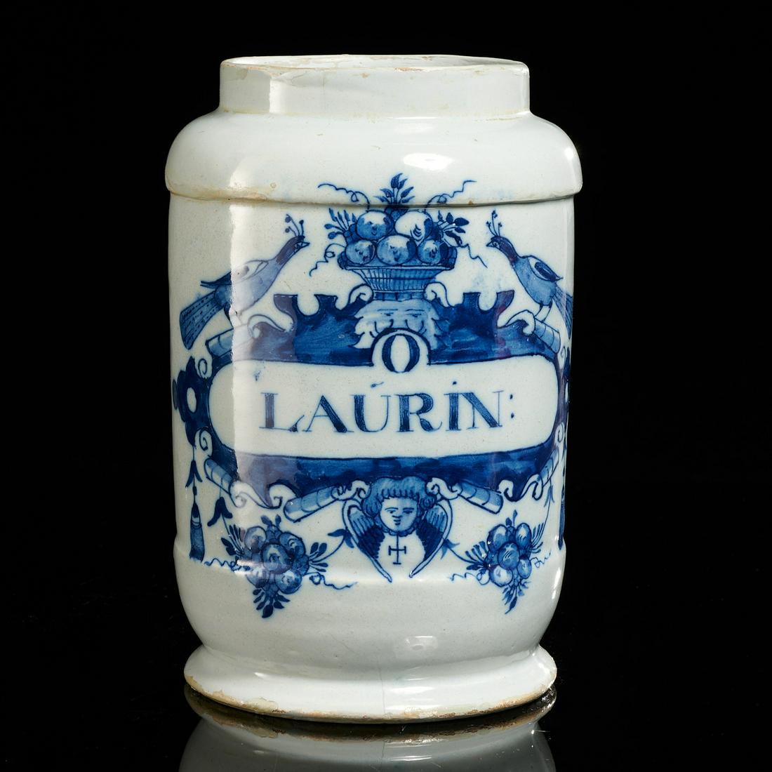 Antique Delft glazed earthenware drug jar