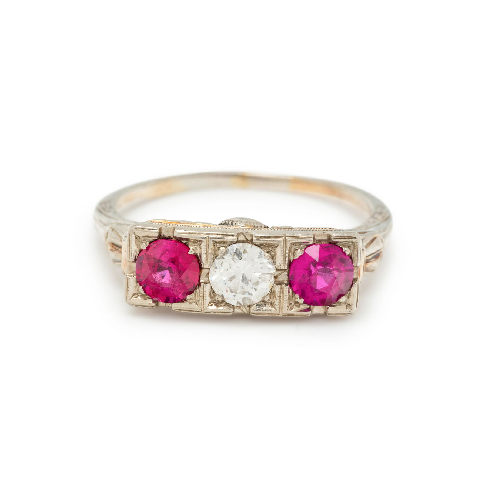 ANTIQUE, DIAMOND AND SYNTHETIC RUBY RING