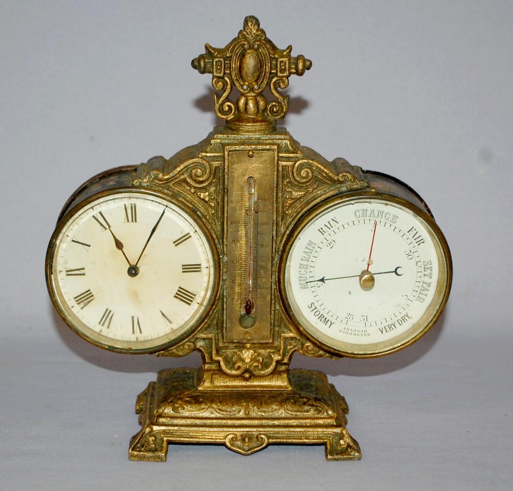 Antique Double Dial Clock and Barometer Iron Desk Clock