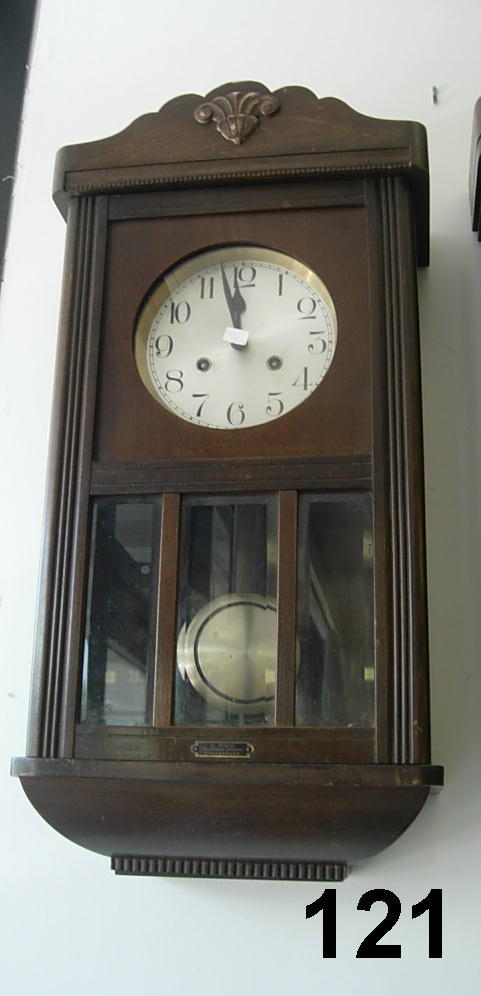 ANTIQUE E. RISS PENDULUM WIND UP WALL CLOCK W CA