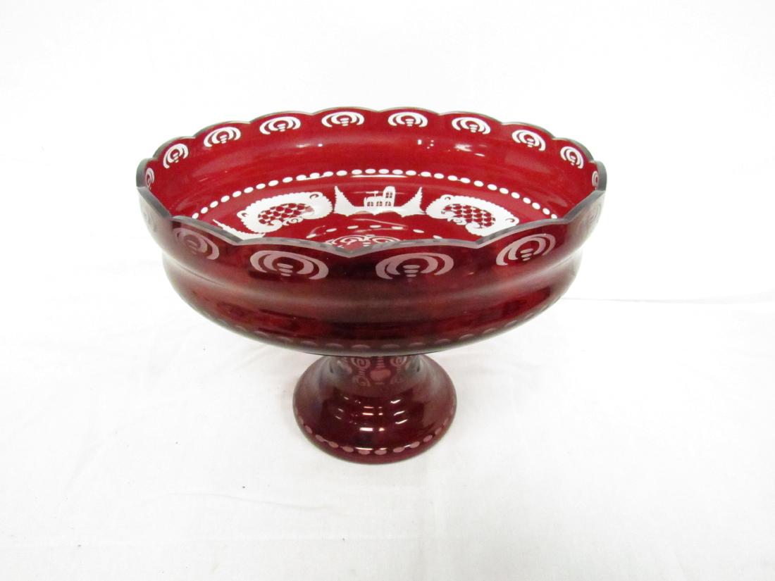 Antique Egermann Ruby Cut to Clear Compote