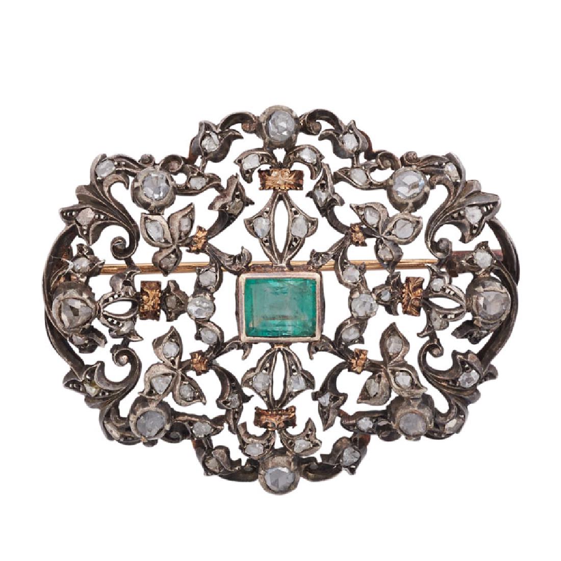 ANTIQUE EMERALD & DIAMOND BROOCH