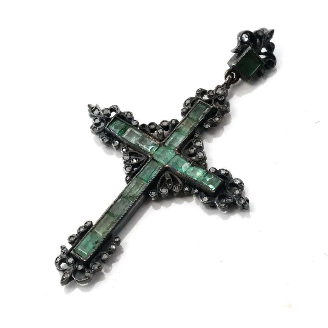9.54ct natural diamonds & vivid green tsavorite cross 18kt & chain **Chairish Auctions4.5(10.3k)$3,400