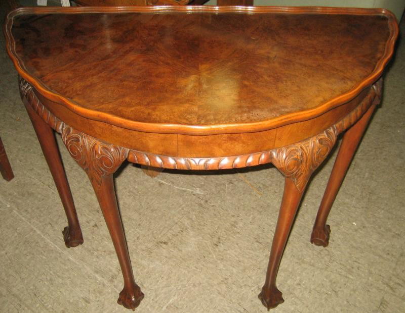 ANTIQUE ENGLISH WALNUT DEMILUNE CONSOLE TABLE