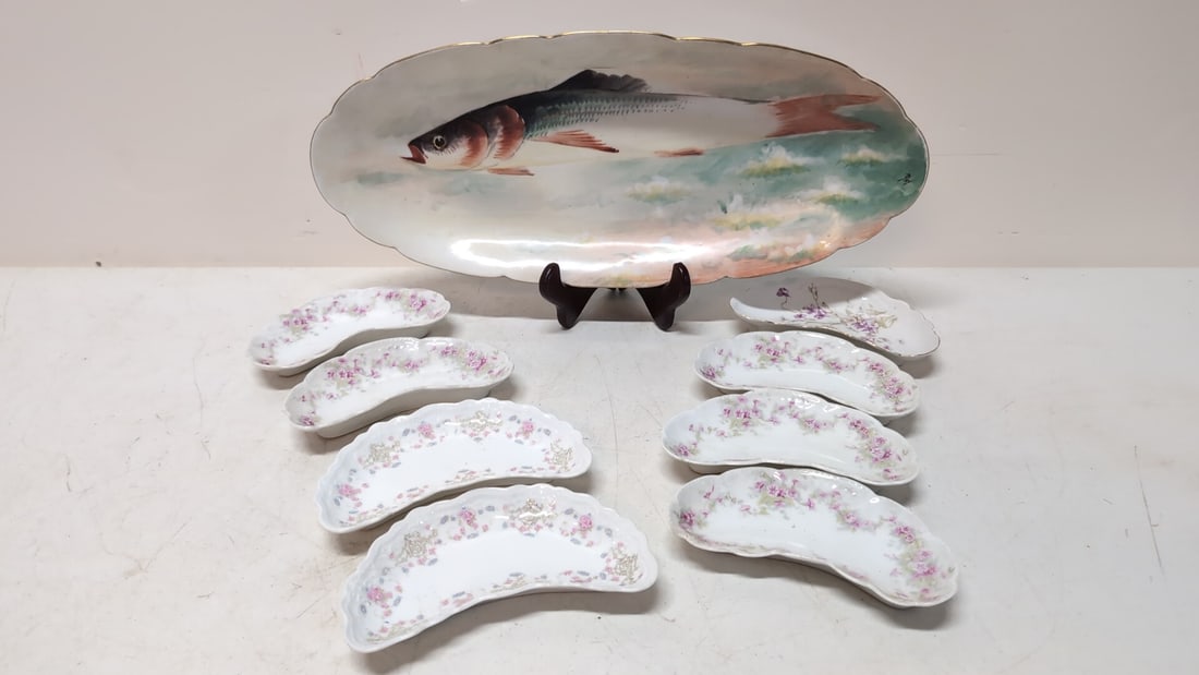 Antique Fish Platter & * bone dishes