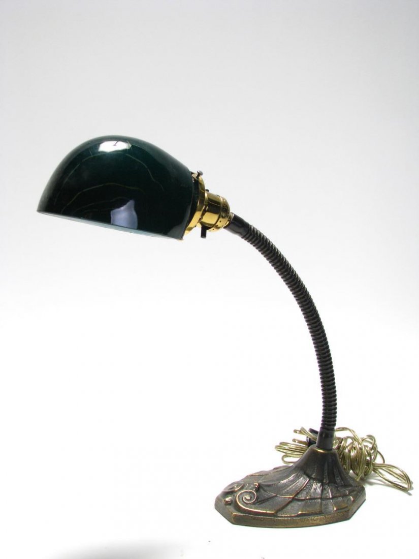 Arts and Crafts cast iron and custard glass gooseneck desk lamp, unsigned, 9"X13"Synesael Davies Auctions4.7(205)$207 days Left