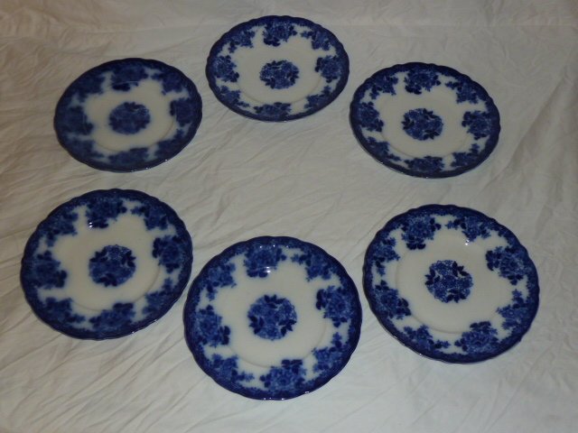 ANTIQUE FLOW BLUE CHINA PLATES SIGNED
