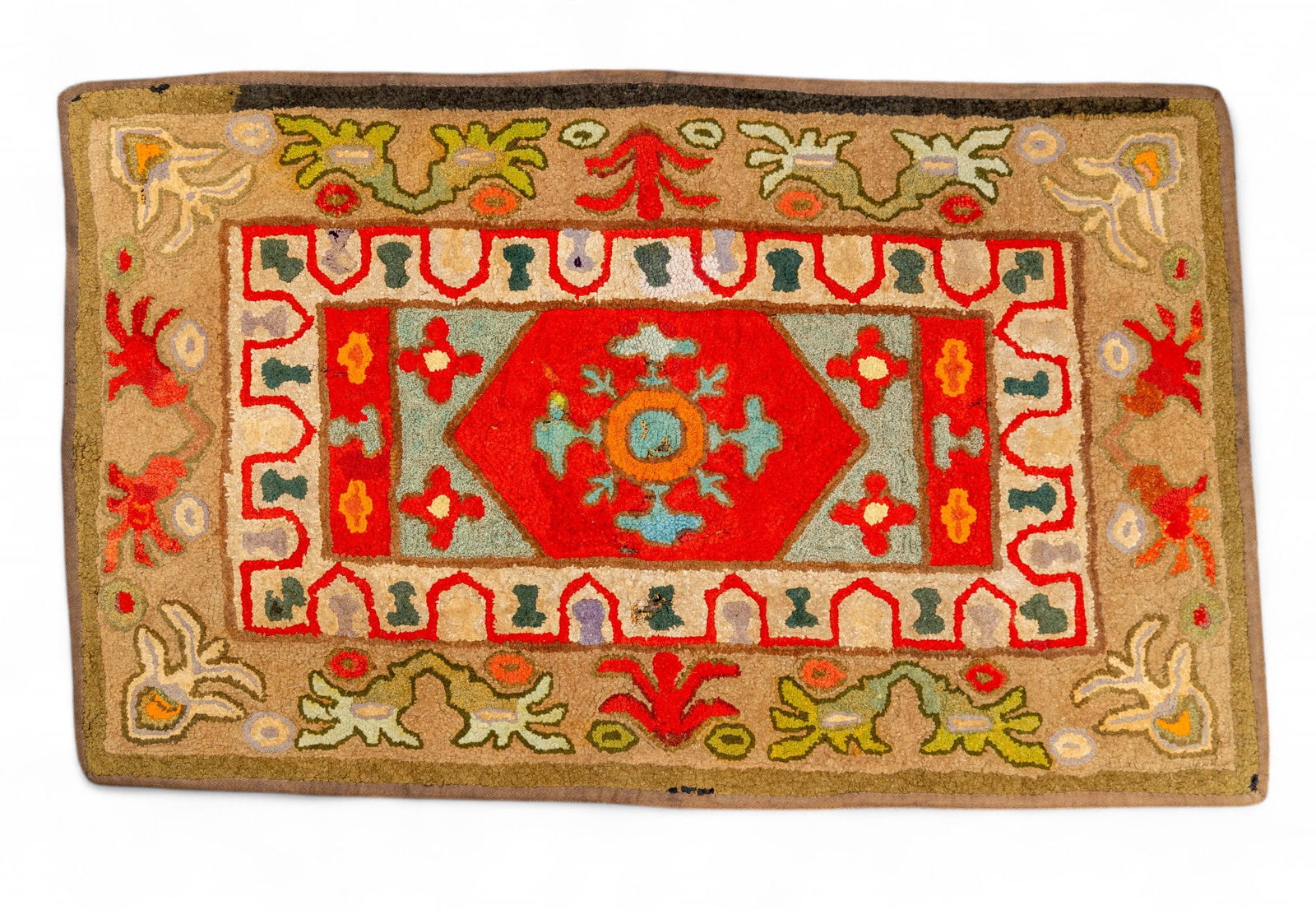 Antique Folk Art Hooked Rug