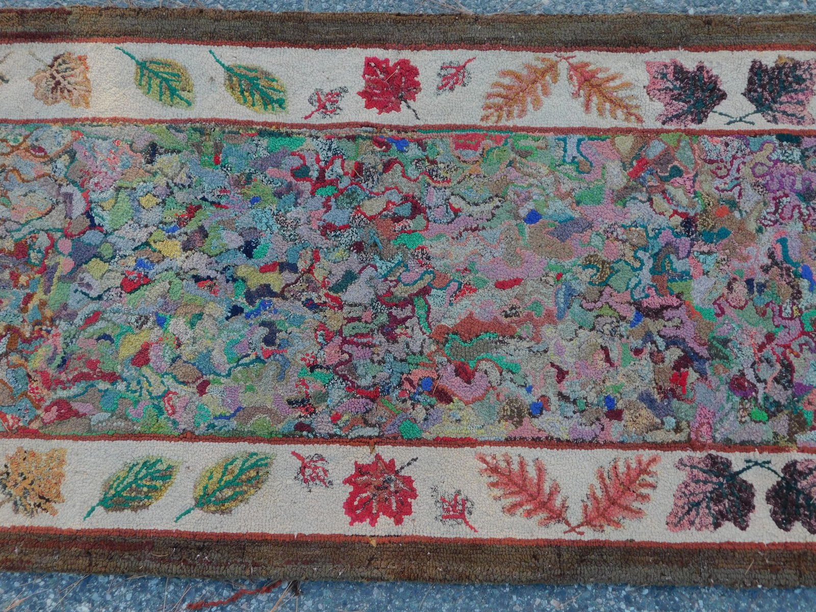 ANTIQUE FOLK ART HOOKED RUNNER RUG