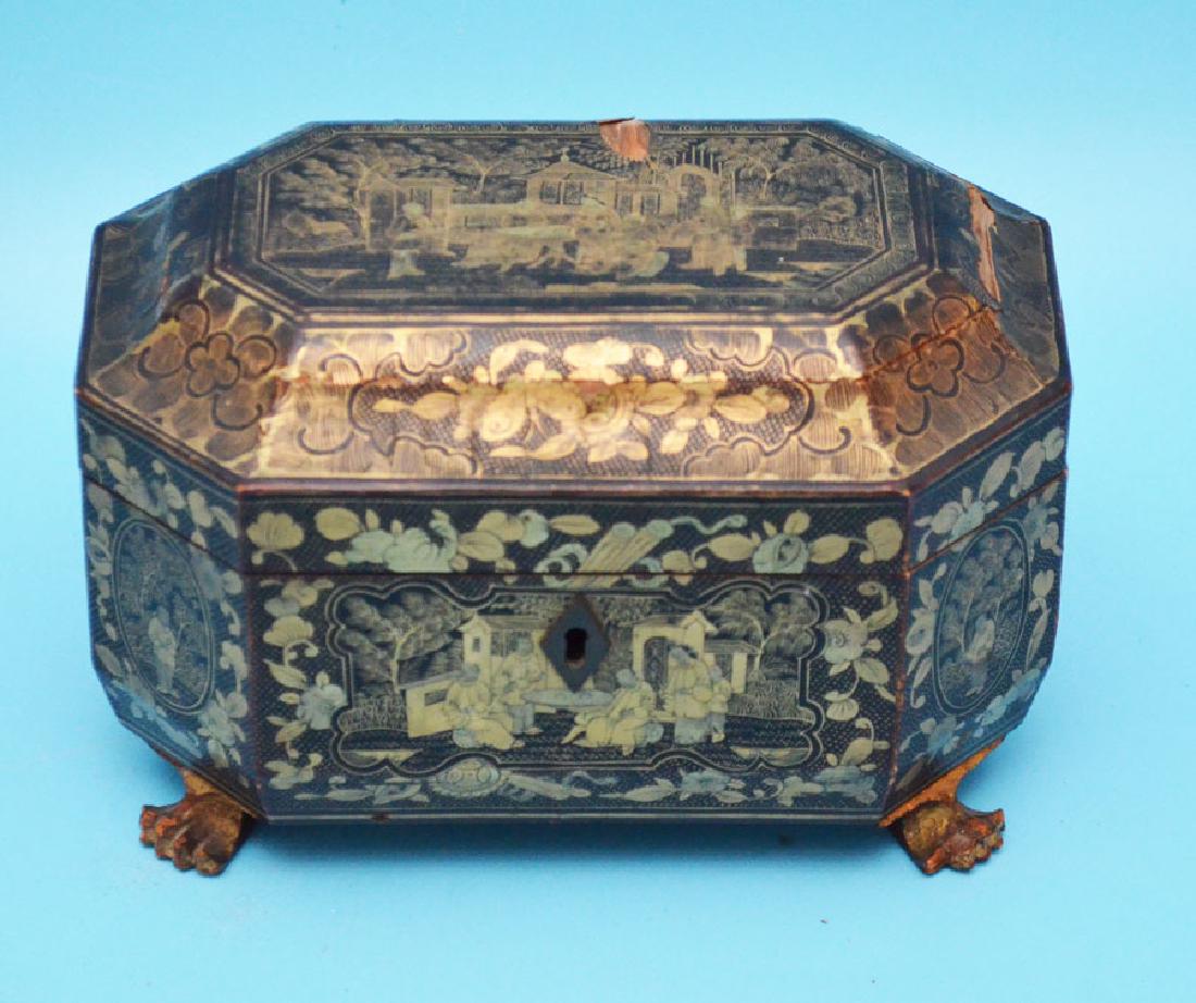 Antique Footed Chinese Lacquer Tea Cady