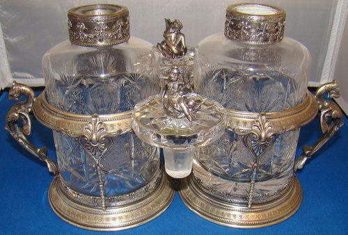 Cut Glass Perfume Bottles and Vanity Decanter Lot4 days LeftCHRISTOFLE FRENCH FIGURAL SILVER-PLATED CENTERPIECE STANDS, LOT OF TWOMar 04, 20262 pc Lot Victorian Meriden & Rogers Silverplate Cruet Condiment Castors5 days Left(2) Waterford Crystal DecantersMar 07, 20263 pc Lot Crystal Decanters American Brilliant Period Cut Glass Moser & More6 days LeftBaccarat Crystal Nancy & Perfection Glass Decanter3 days LeftVintage Mahogany Three Bottle Cut Crystal Tantalus with Silver Plated MountsPair of Fine Vintage Silver Collared Cut Glass DecantersThree Glass and French Silver Dresser Jars, Bush Family Provenance2 days LeftFrench Pair Baccarat Style Glass Liquor DecantersMar 11, 2026Two Silverplated & Glass Bottle Cruet StandsMar 04, 2026Baccarat, Etc. Glass Vessels, 2Mar 12, 2026Good French Empire Silver Decanter Stand, Louis Joseph-Bouty, 1794-1809Mar 12, 2026George I Sterling Silver Cruet StandMar 16, 2026A pair of silver-mounted 'glug glug' decanters, Early 20th century,Continental Brass Candle Box, 3 Decanters, TeabowlMar 13, 2026