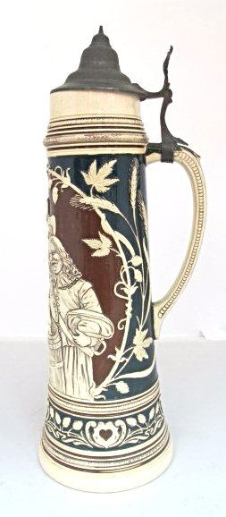 Antique c. 1900 Gertz 1816 German Stein 2L """"Tiroler Leben"""" Pouring Vessel w/ Lid (French Zone)ART 4 AUCTION4.3(4)£100