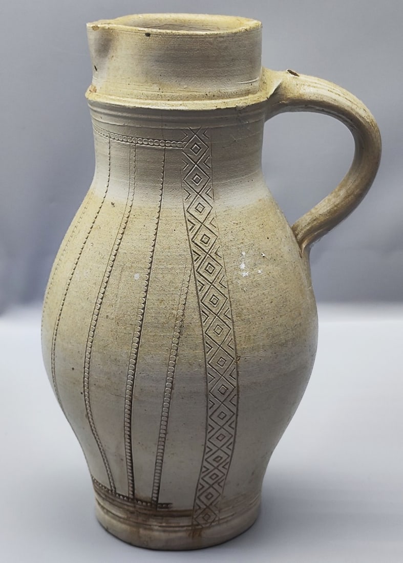 Antique German pottery beer/wine pitcher