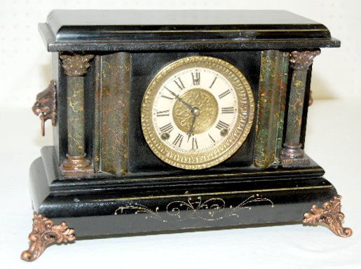 Antique Gilbert Black Mantel Clock