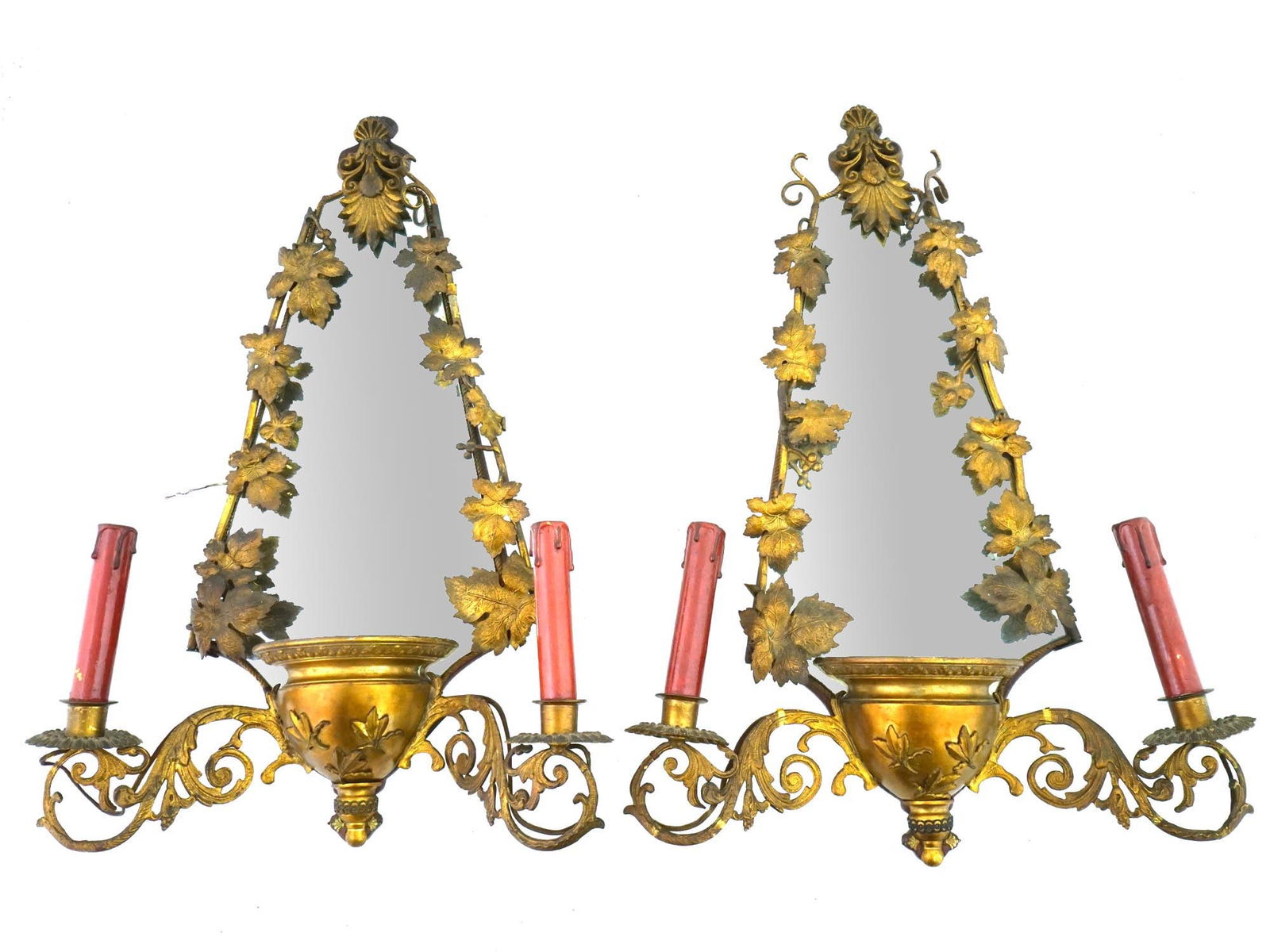 ANTIQUE GILT BRASS MIRRORED ELECTRICAL WALL SCONCES