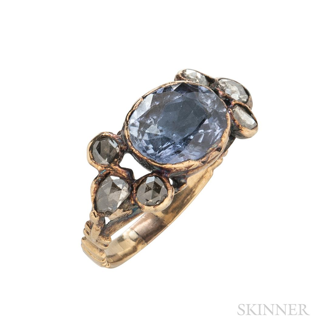 14K gold sapphire and diamond mounted ring. Central oval sapphire (5.4 x 8.2mm) flanked by 2 roundTremont Auctions4.6(313)$250(1 bid)Mar 01, 2026