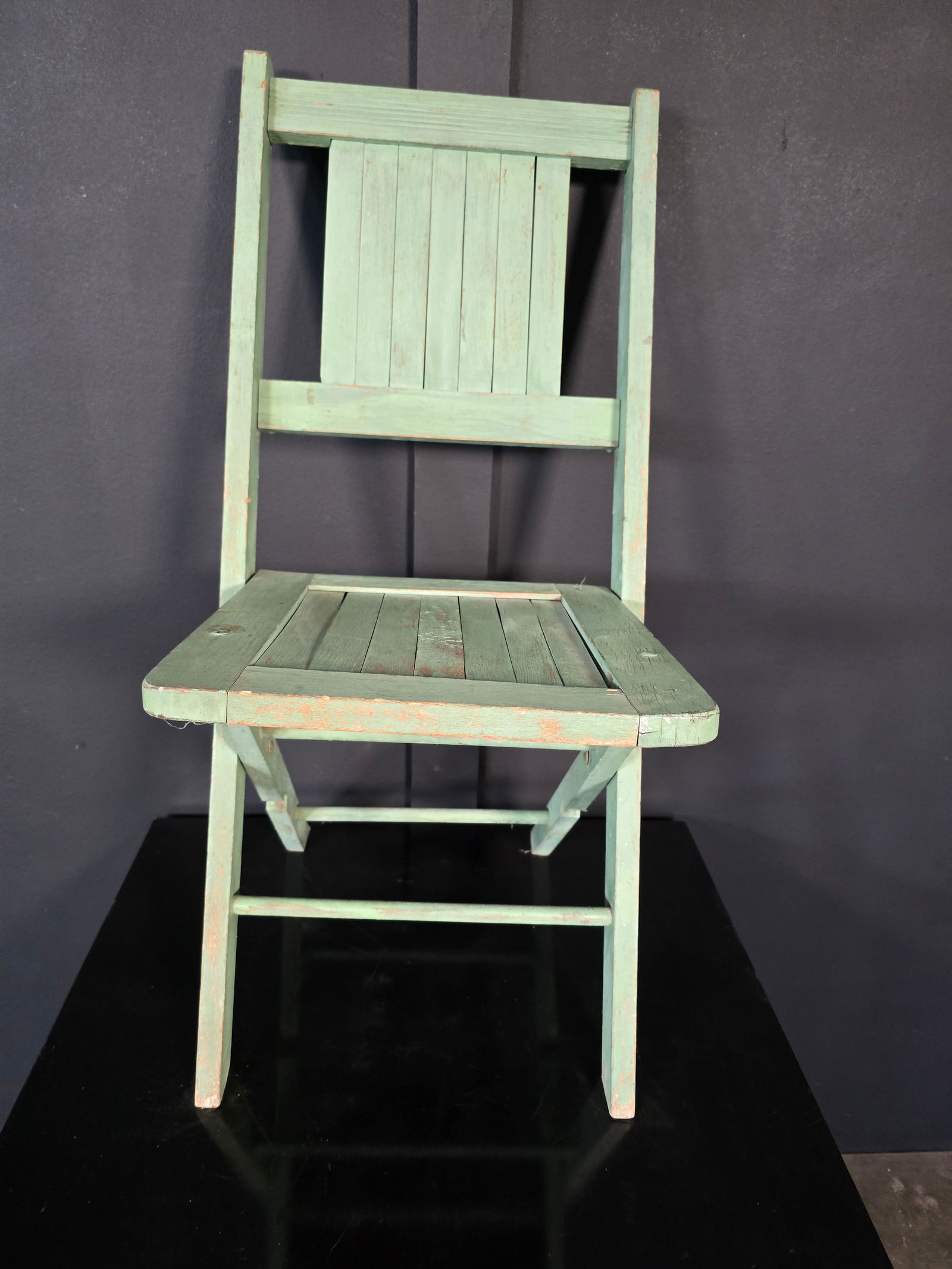 Vintage Robin's Egg Blue Antique Folding Chair with Spindle Back