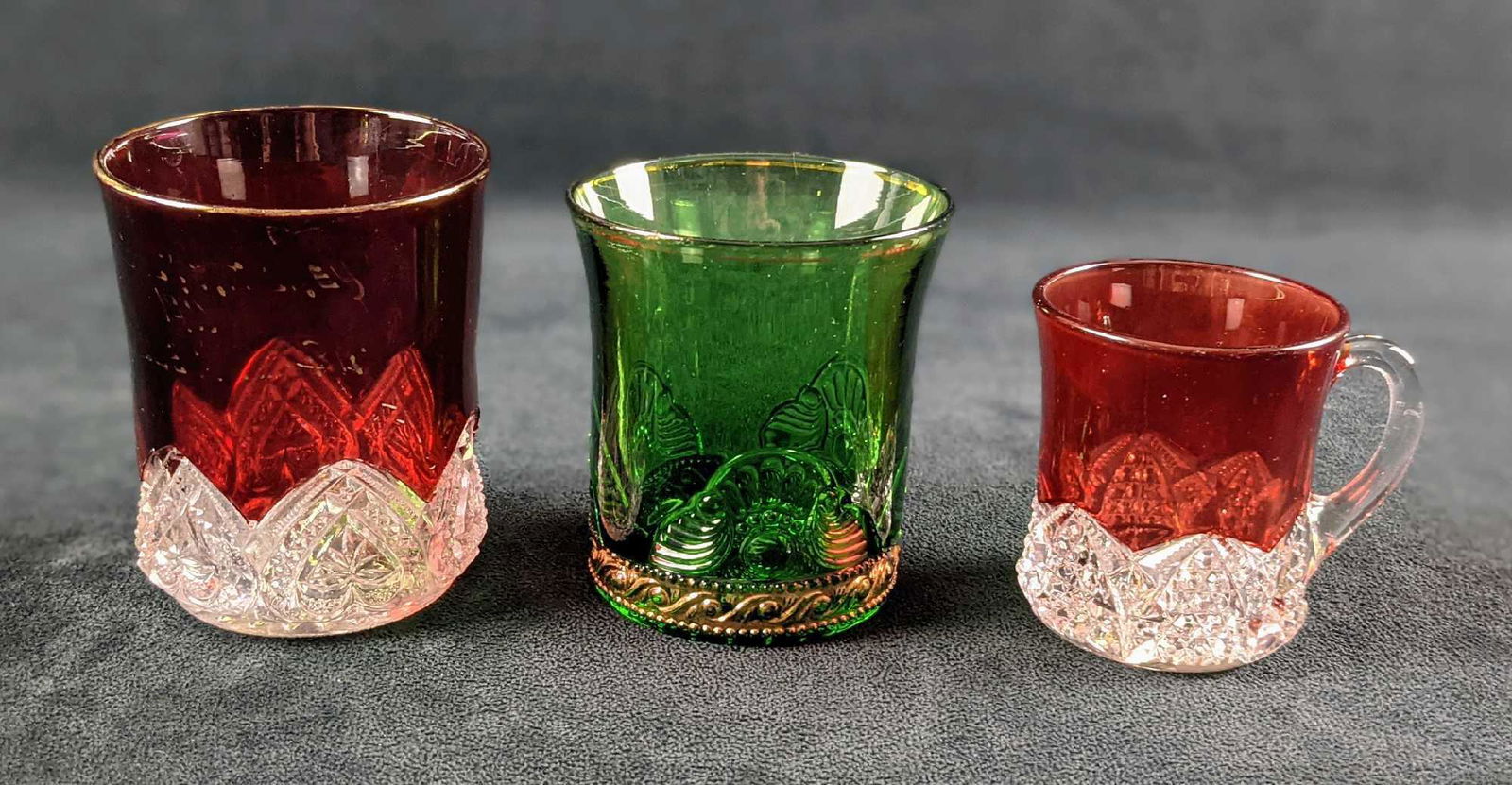 Antique Green Ruby Stained Clear Souvenir Glasses