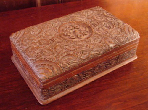 018: Antique Hand Carved Walnut Box
