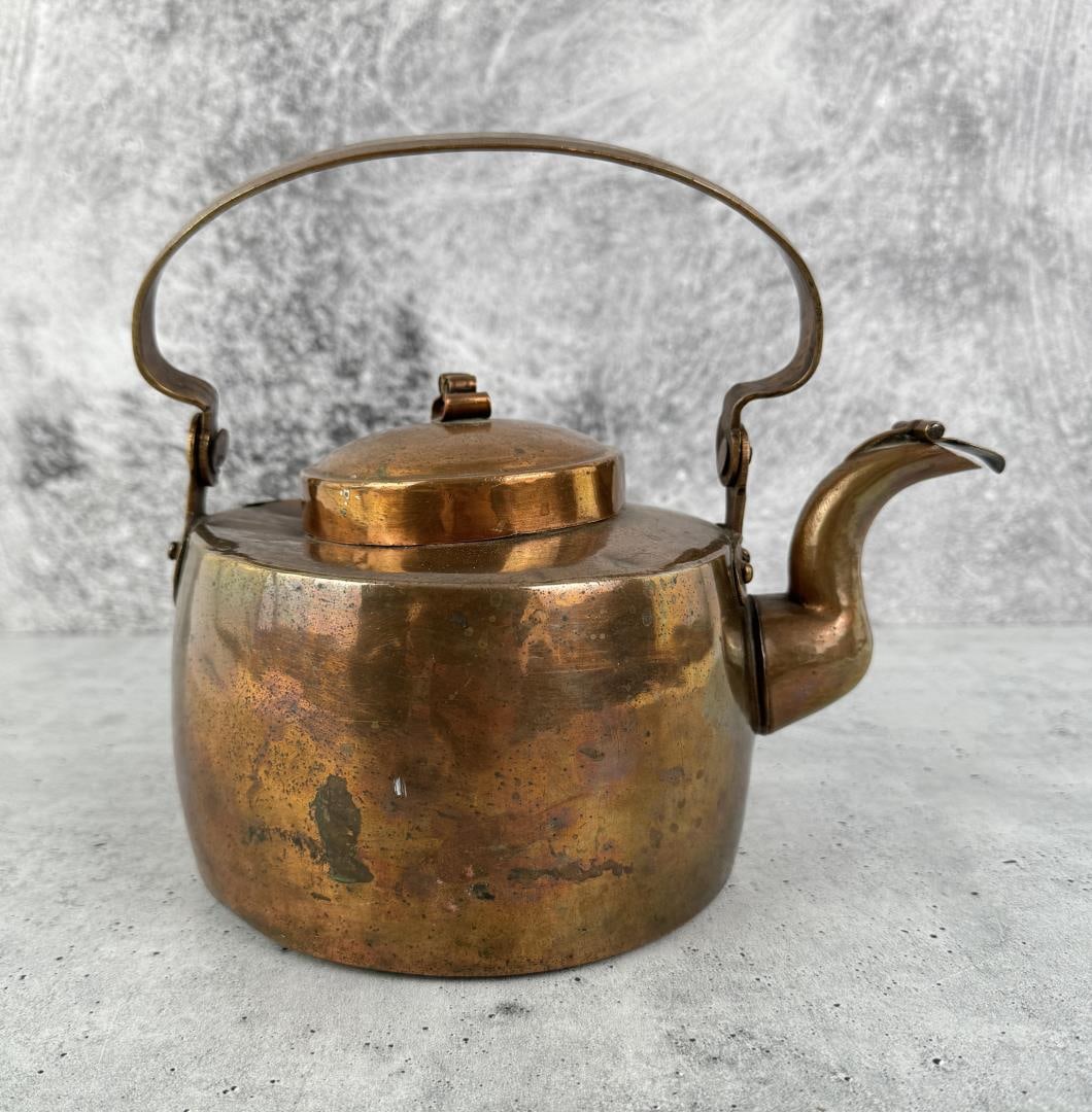 Old Chinese Copper Inlay Turquoise Handle Teapot