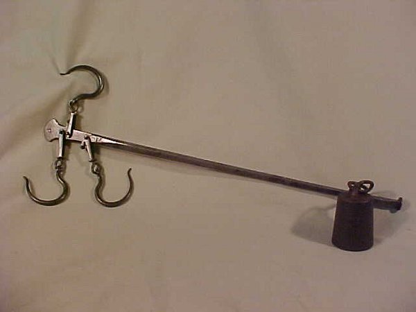 ANTIQUE HAND HELD SCALE WITH WEIGHT