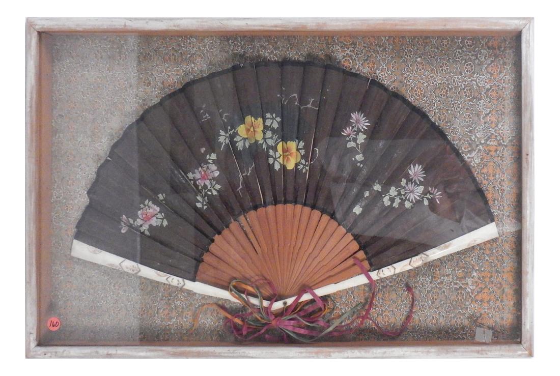 Antique Hand-Painted Fan in Shadow Frame