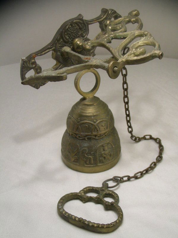 ANTIQUE HANGING FORGED BRASS BELL