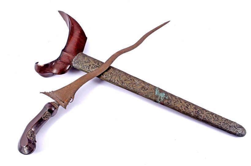 Indonesian Javanese 18-19thC Pamor Meteorite Blade Keris Kris Dagger Sword w/ Detailed Sheath | RareTreasure Trove Auctions4.4(18)$100Feb 28, 2026