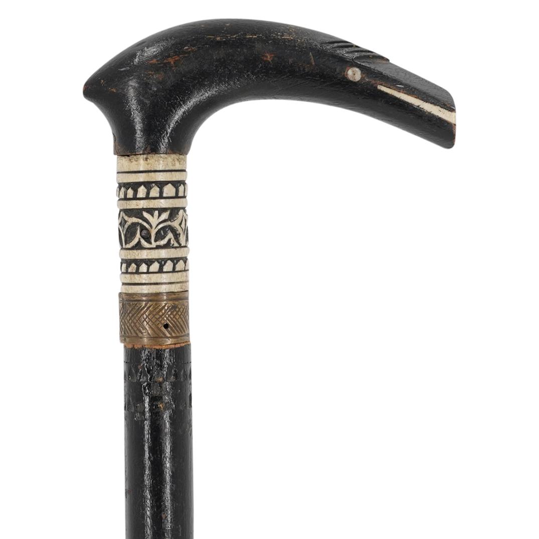 Antique Indian Sword Cane with Carved Bone