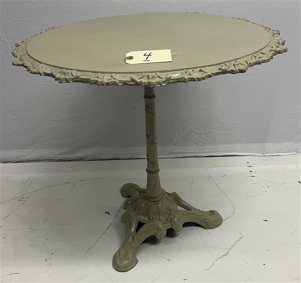 Round dining table with a black wrought iron base and wooden, top.Basel Auction House4.5(54)$2505 days Left