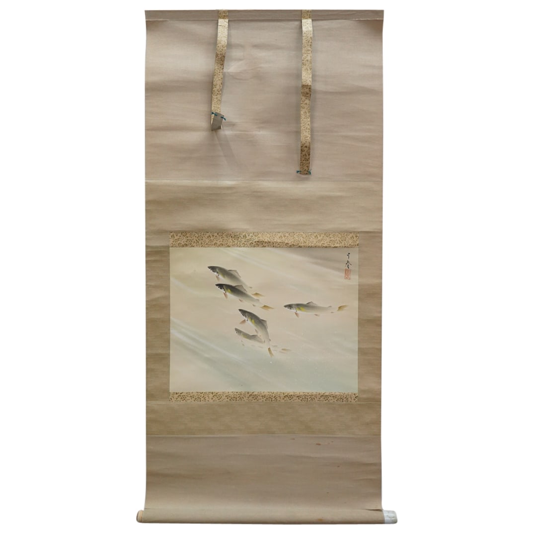 Antique Japanese Fish Kakejiku Scroll