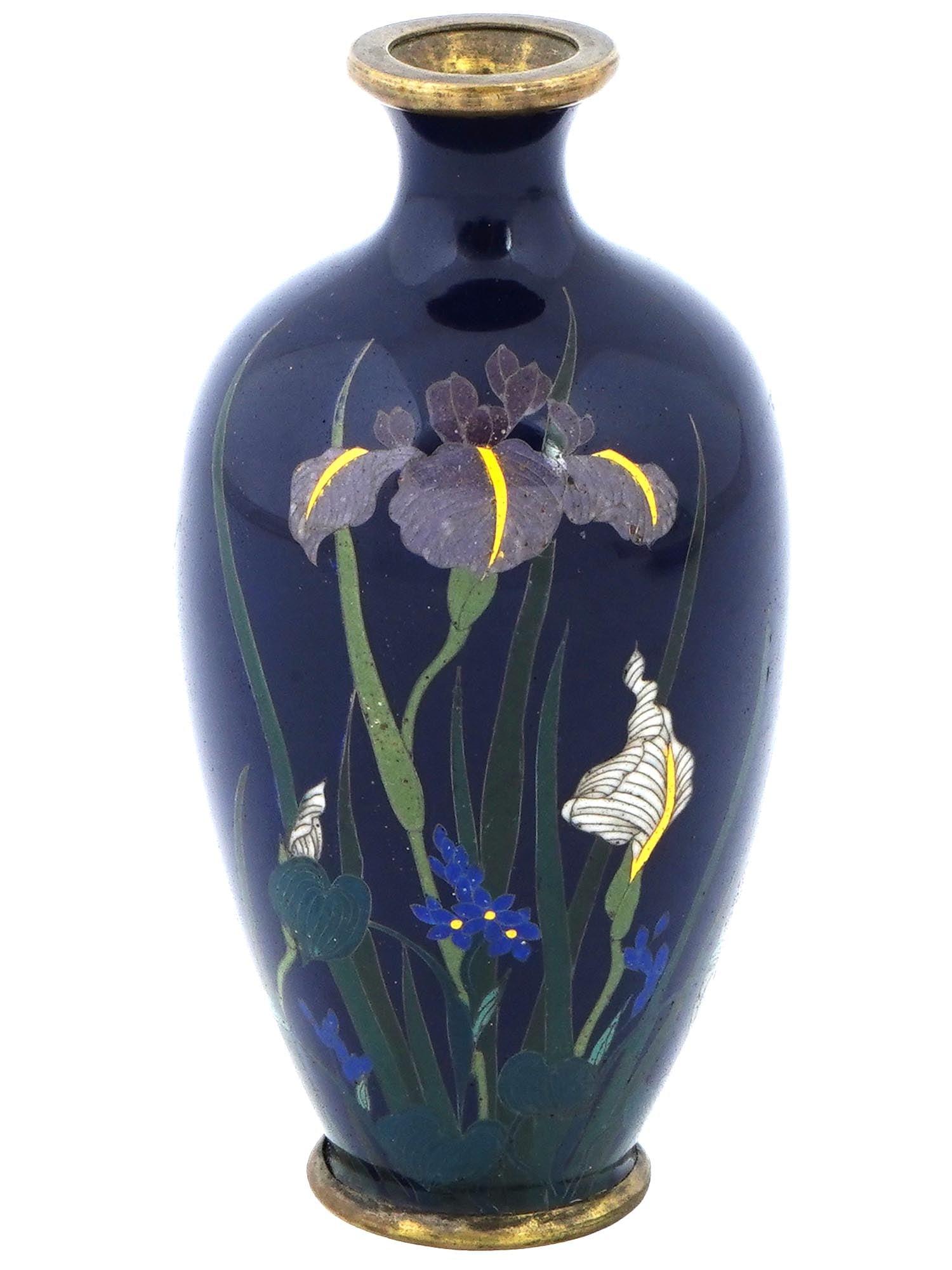 ANTIQUE JAPANESE MEIJI CLOISONNE ENAMEL IRIS VASE