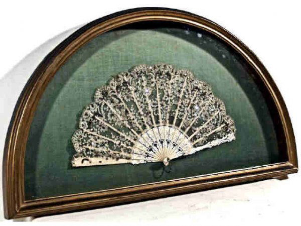 ANTIQUE LACEWORK FAN GILTWOOD SHADOWBOX FRAME