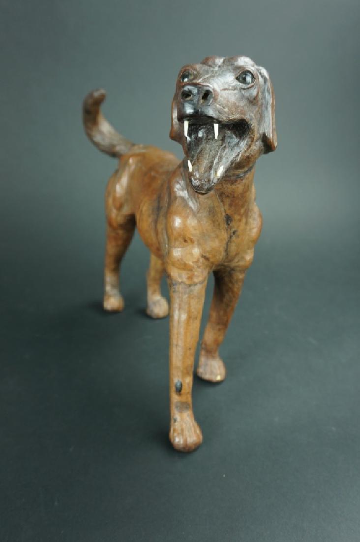 ANTIQUE LEATHER CLAD DOG FIGURE