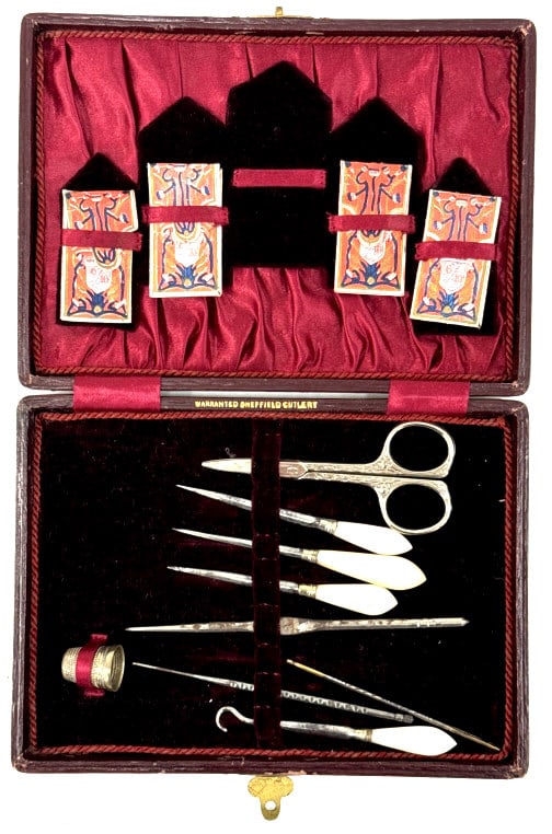 Antique Leather Sheffield Sewing Tool Case