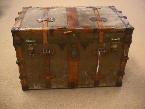 ANTIQUE LEATHER STRAP STEAMER TRUNK