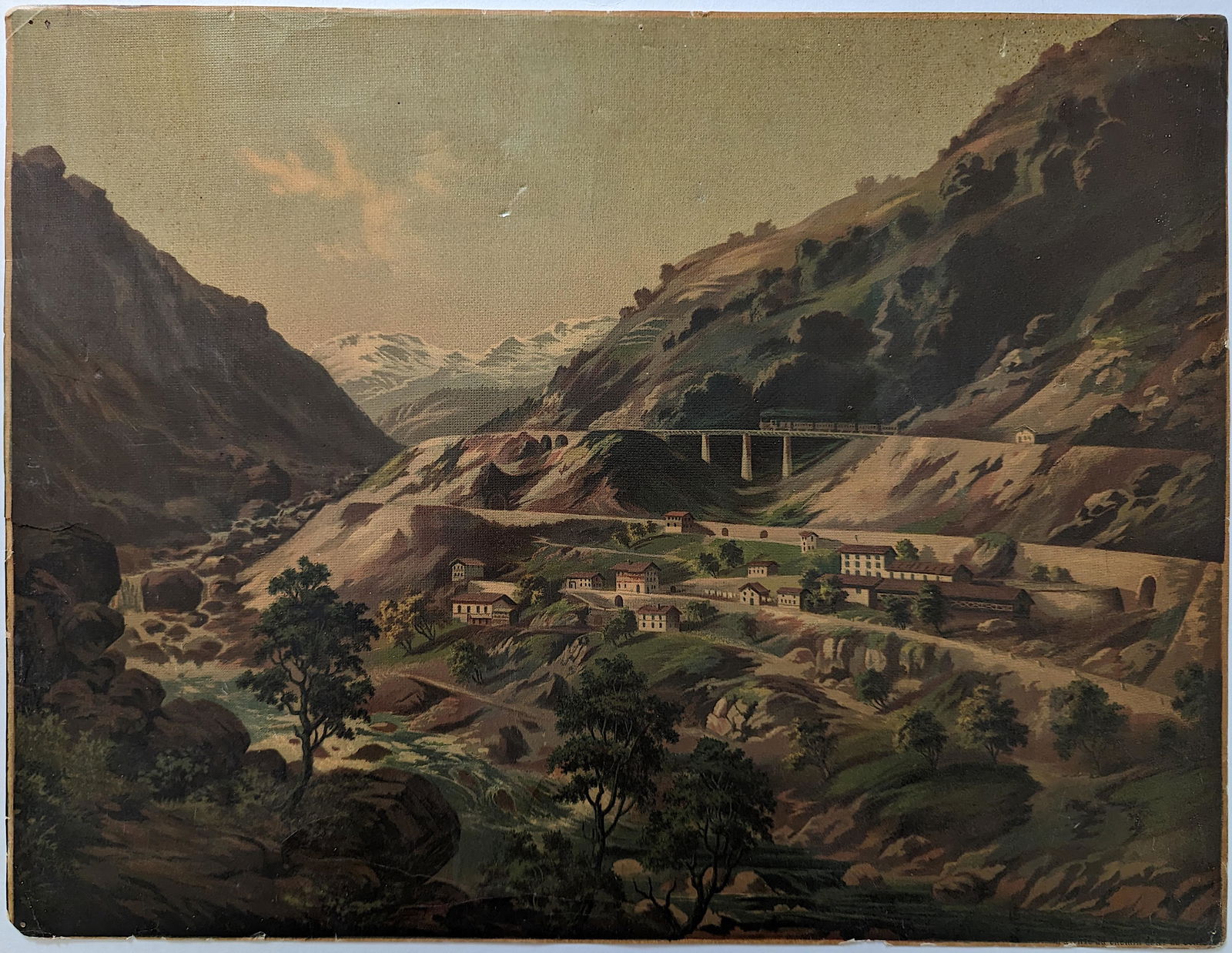 Antique Lithograph Train Mountain View Switzerland